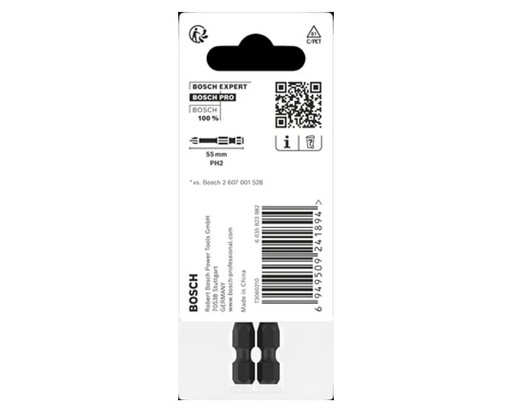 Đầu vít ngắn Bosch Pro Ph2 55mm – Bộ 2 mũi (2608522520)