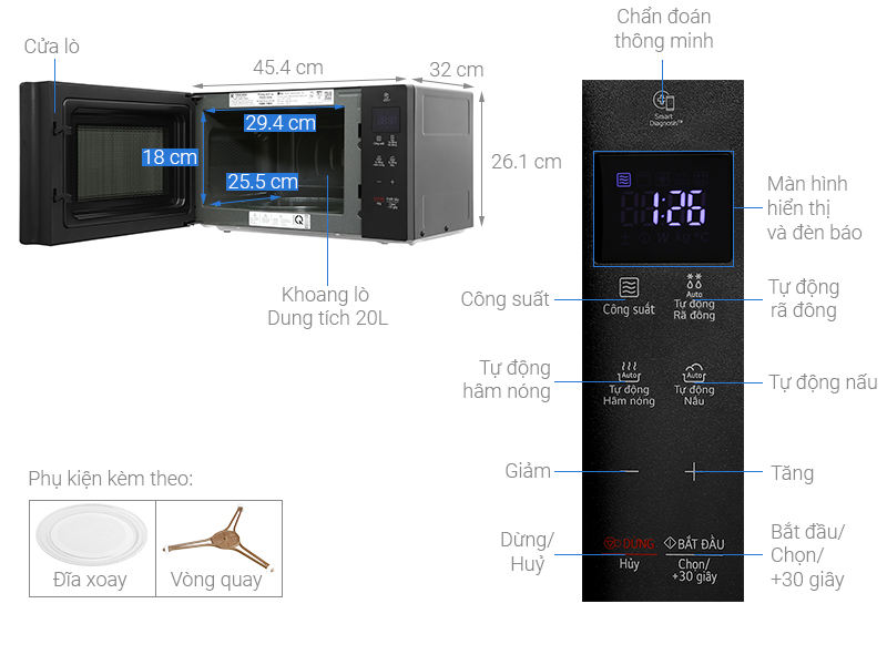 Thiết bị có dung tích 20 Lít, dễ dàng hâm nóng các loại thức ăn, từ những chiếc bát súp nhỏ đến các đĩa thức ăn lớn, phù hợp cho những gia đình có đông người. Khoang lò được làm bằng thép tráng men cao cấp, bền bỉ và dễ dàng vệ sinh khi bị bám bẩn.