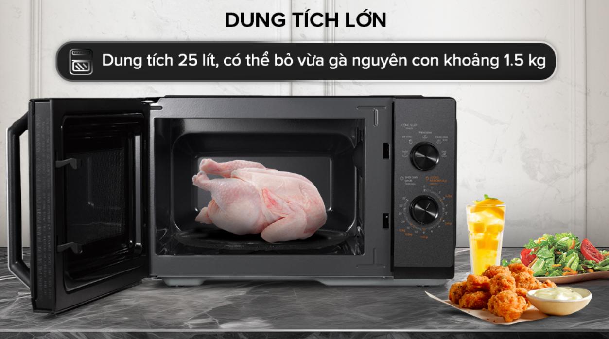 – Dung tích 25 lít, có thể bỏ vừa gà nguyên con khoảng 1.5 kg.