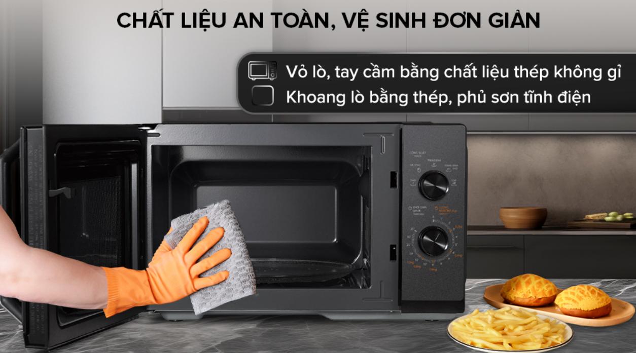 – Sản phẩm bền bỉ, dễ dàng vệ sinh sau khi sử dụng nhờ khoang lò được làm bằng thép sơn tĩnh điện.