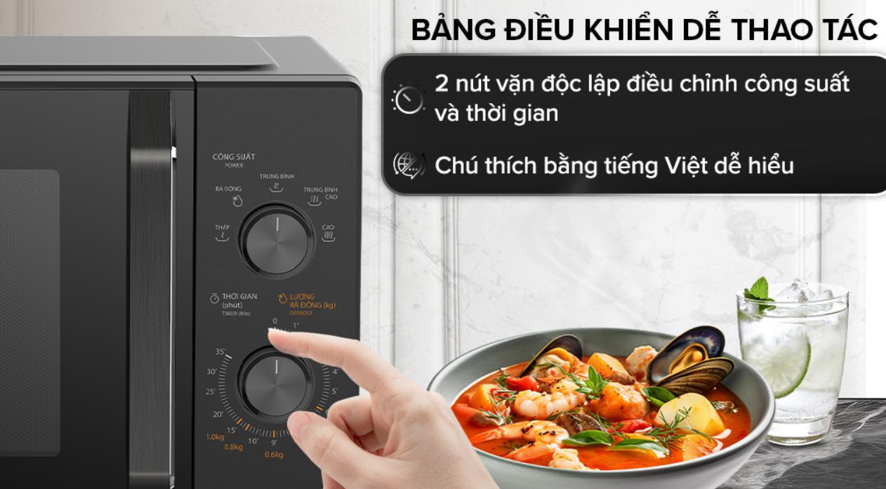 – Người dùng dễ dàng điều chỉnh lò với bảng điều khiển nút vặn, có chú thích tiếng Việt – Anh rõ ràng, phù hợp với cả người lớn tuổi.