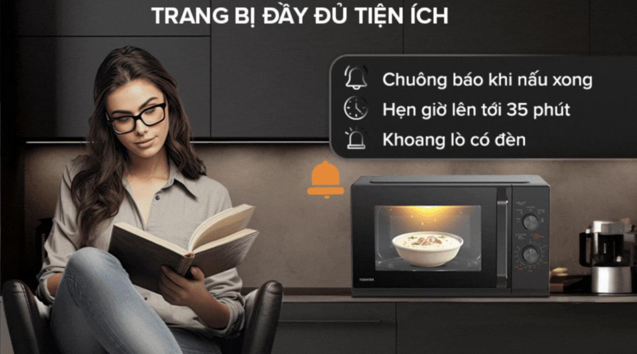 – Lò vi sóng này có trang bị chuông báo sau khi nấu xong giúp tránh tình trạng để quên thức ăn trong lò.