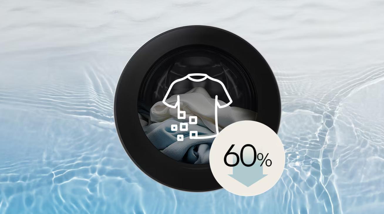 LG tiên phong với chu trình giảm phát thải vi nhựa đến 60% nhờ chuyển động Lắc và Xoay độc quyền.Công nghệ này giảm ma sát giữa quần áo, hạn chế sợi vải tách ra trong quá trình giặt – một bước tiến hướng đến bảo vệ môi trường và đại dương.