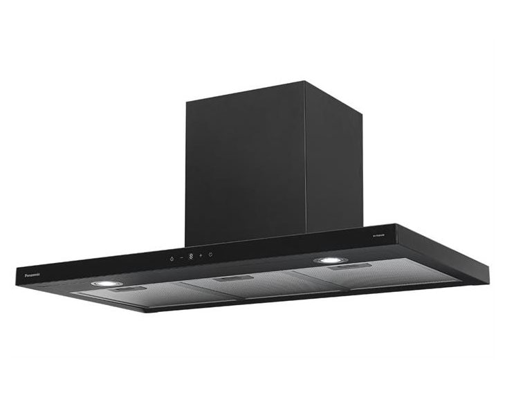 Máy hút mùi Panasonic FV-TX9ADBYUE mang kiểu dáng áp tường chữ T quen thuộc, kết hợp gam màu đen tinh tế đem lại vẻ sang trọng cho không gian bếp.
