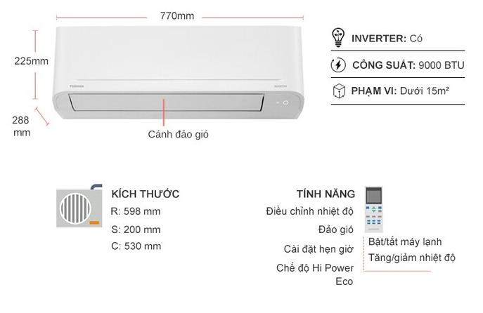 Với công suất làm lạnh 1HP (tương đương 9.000 BTU), máy lạnh Toshiba Inverter đảm bảo đưa không gian của bạn về nhiệt độ thoải mái, đặc biệt phù hợp với các phòng có diện tích dưới 15m² (từ 30 đến 45m³) như phòng ngủ, phòng làm việc, phòng khách nhỏ,…