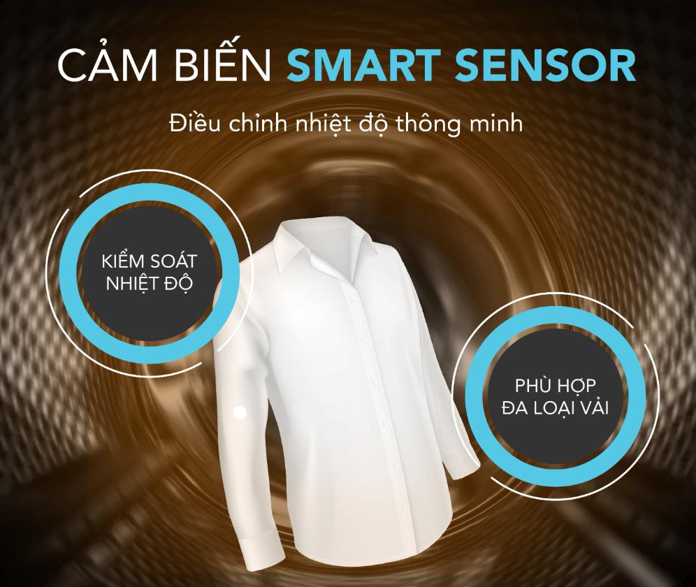 Máy có thể nhận biết chính xác độ ẩm của quần áo, từ đó điều chỉnh nhiệt độ phù hợp, tránh việc quần áo bị khô quá mức hoặc không đủ khô
