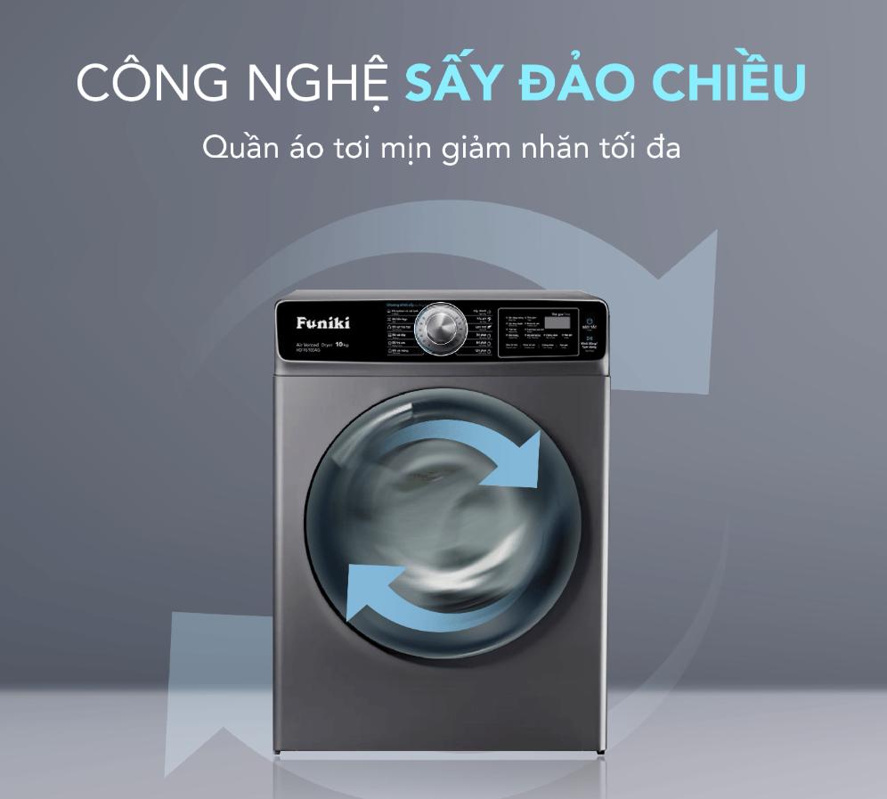 Lồng sấy chuyển động theo cả 2 chiều, tạo ra luồng khí nóng 3D tuần hoàn và thẩm thấu vào từng sợi vải, giúp quần áo khô đều và tơi xốp, không bị khô cứng hay xoắn rối