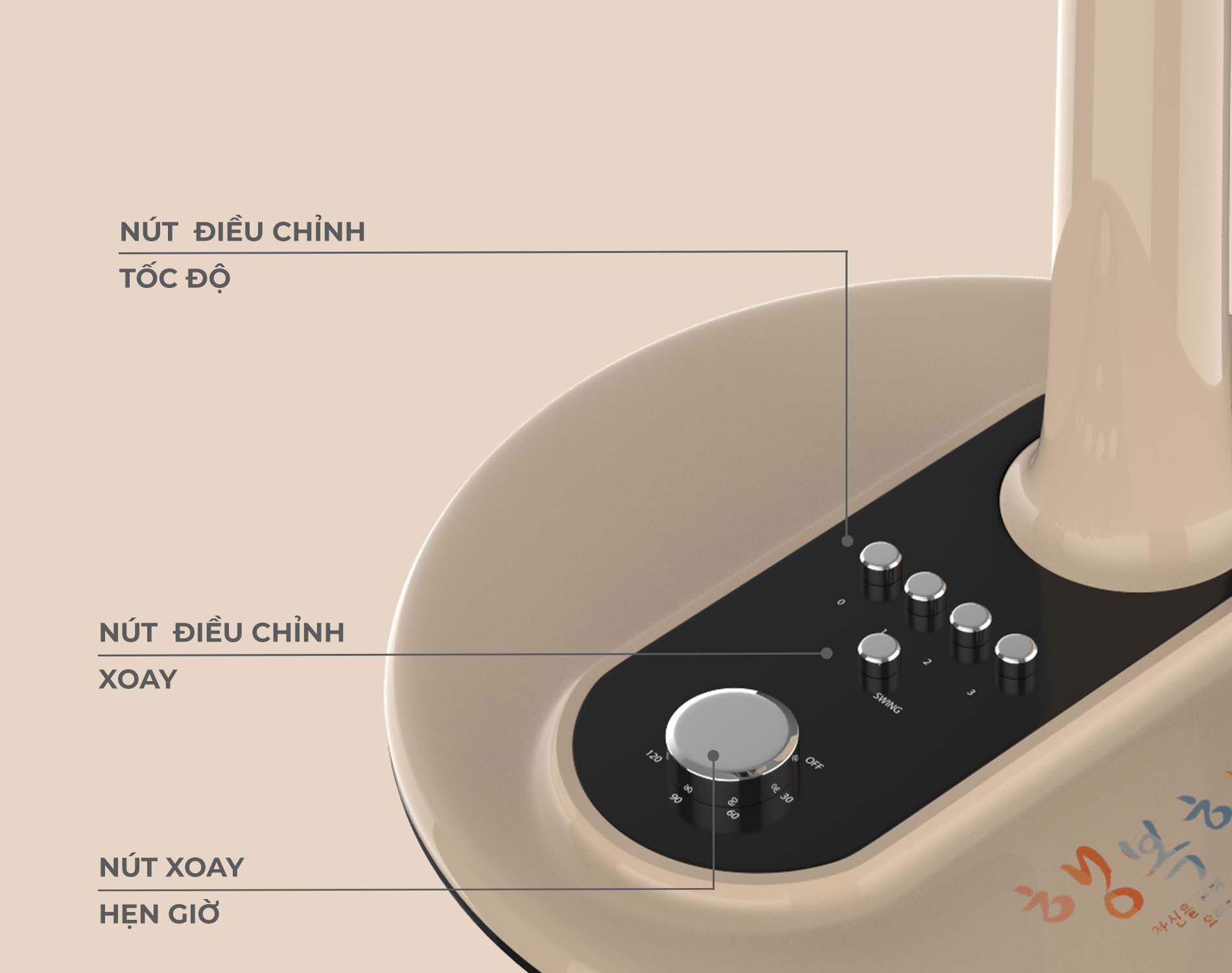 Quạt AC FAH-010 được trang bị bảng điều khiển nút nhấn kết hợp núm xoay trực quan dễ điều chỉnh 3 tốc độ gió. Chức năng hẹn giờ thông minh từ 1- 180 phút để tận hưởng sự bình yên mọi lúc, mà không cần phải thức dậy lúc nửa đêm để tắt quạt.