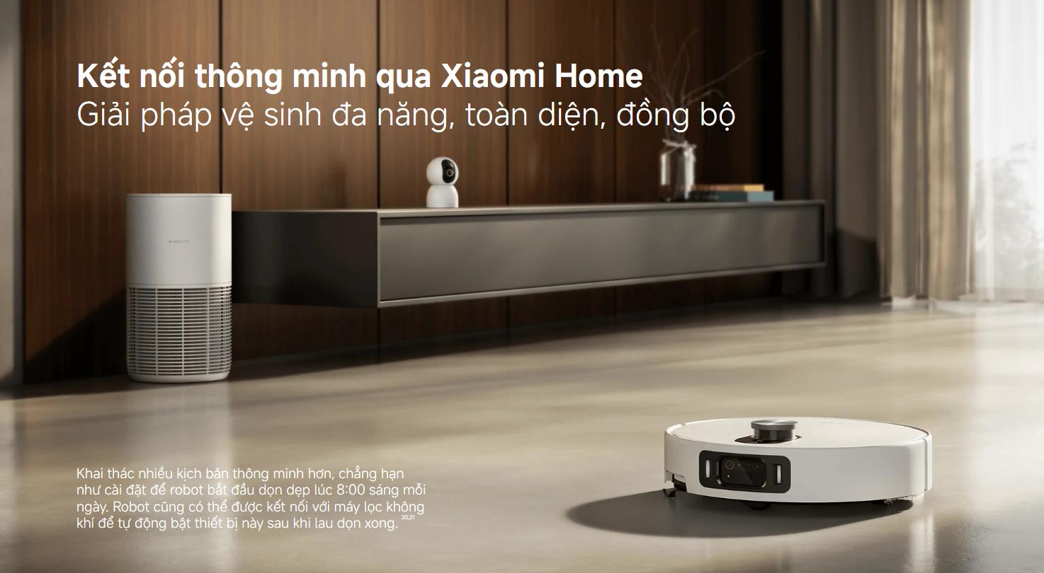 Nhằm mang đến trải nghiệm sử dụng thông minh và tiện lợi, robot hút bụi Xiaomi Vacuum 5 Pro được trang bị khả năng kết nối với ứng dụng Xiaomi Home. Chỉ cần vài thao tác đơn giản trên điện thoại, người dùng đã có thể điều khiển robot từ xa, lên lịch lau dọn và tùy chỉnh chế độ hoạt động theo nhu cầu. Bạn dễ dàng: