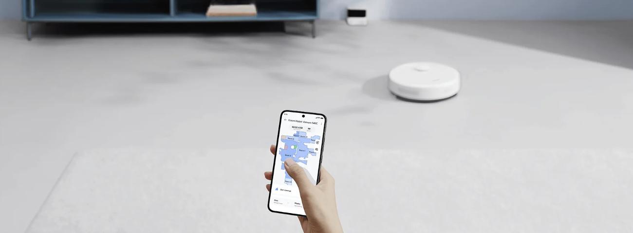 – Điều khiển dễ dàng qua ứng dụng Mi Home trên điện thoại, cho phép người dùng theo dõi quá trình dọn dẹp theo thời gian thực, thiết lập lịch làm việc, điều chỉnh chế độ hút hoặc chọn khu vực cần vệ sinh chỉ bằng vài thao tác.