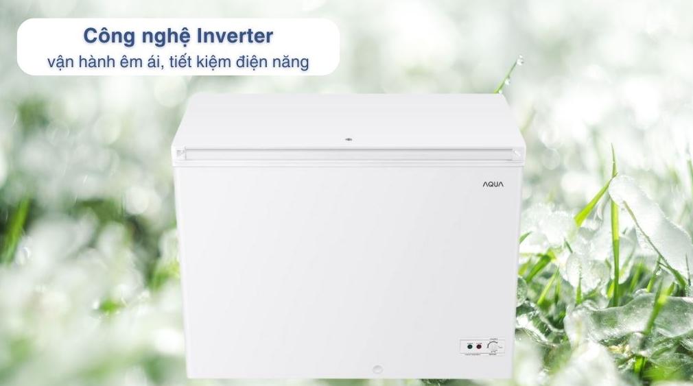 Tủ đông Aqua Inverter 301 lít AQF-C4001EN với dung tích sử dụng 301 lít là lựa chọn phù hợp cho hộ kinh doanh nhỏ, cửa hàng tạp hóa hoặc gia đình cần bảo quản thực phẩm đông lạnh an toàn và hiệu quả. Tủ được trang bị công nghệ Inverter tiết kiệm điện, hệ thống làm lạnh 3D, dàn lạnh 5 chiều và khả năng kháng khuẩn nhờ lớp bạc Ag+, mang lại hiệu quả bảo quản tối ưu và an toàn thực phẩm lâu dài.