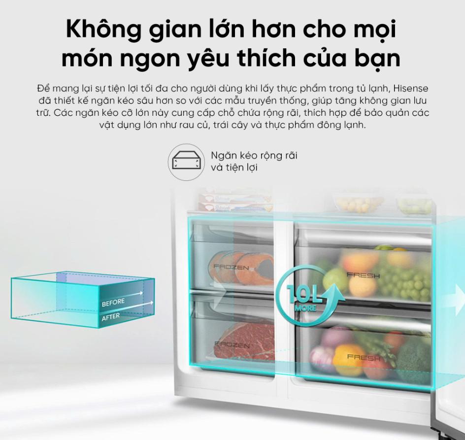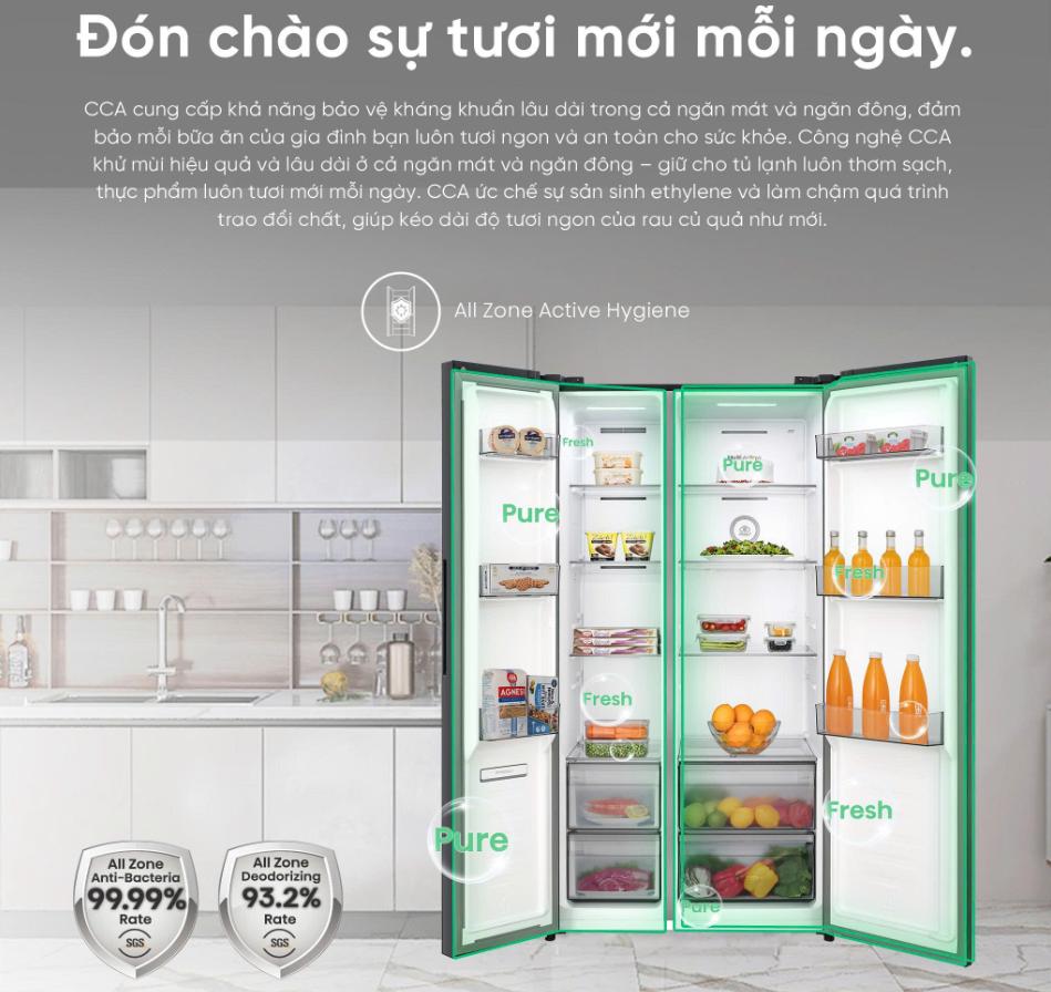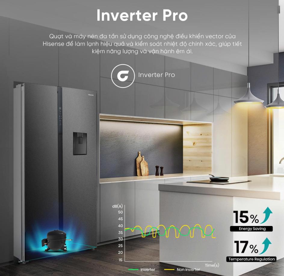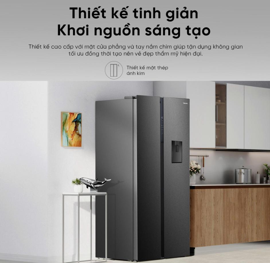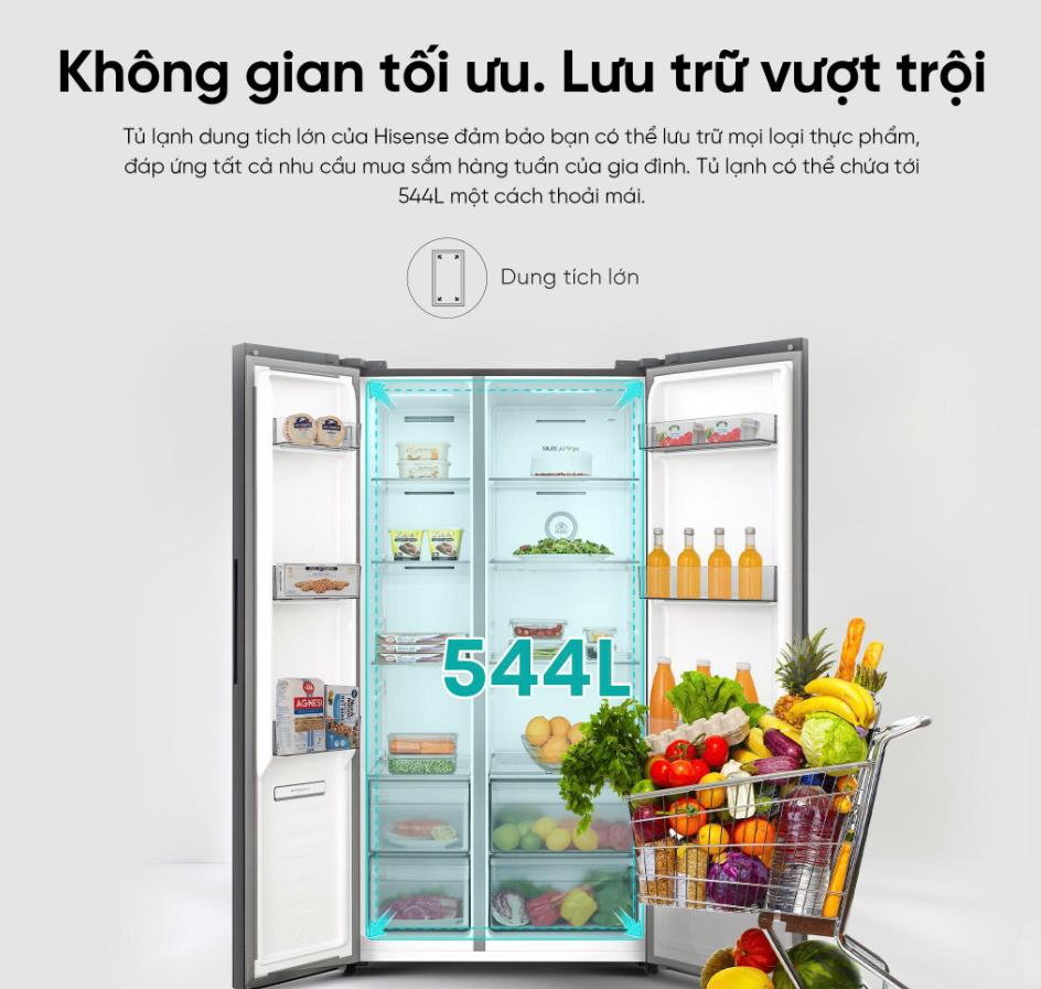 Tủ lạnh Hisense Inverter 550 lít RS708N4EBND gây ấn tượng nhờ thiết kế sang trọng, nhiều công nghệ tiên tiến và khả năng tiết kiệm điện vượt trội. Sản phẩm không chỉ mang lại không gian lưu trữ rộng rãi mà còn giúp bảo quản thực phẩm tươi ngon lâu dài, đáp ứng nhu cầu của những gia đình đông người hoặc thường xuyên dự trữ thực phẩm.